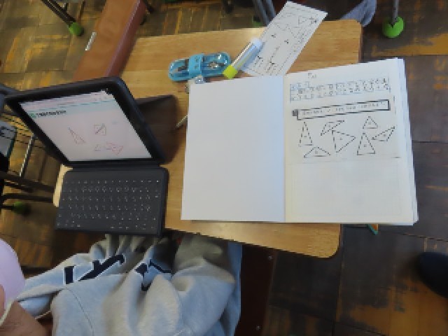 3年生の算数では、「三角形を調べよう」の学習を行っていました。今日は「三角形は何に目をつけると仲間分けすることができるだろうか」をめあてに、三角形の特徴に注目しながら分類の仕方を考えました。子どもたちは、辺の長さや角の大きさに着目しながら一生懸命取り組んでいました。