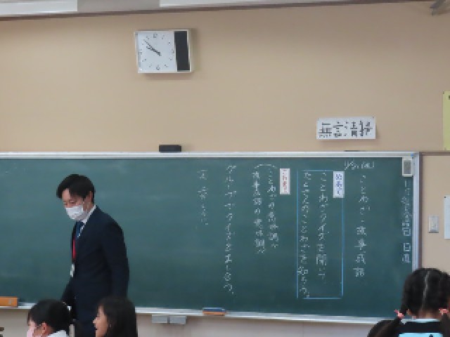 3年生の国語では、「ことわざ・故事成語」の学習に取り組んでいました。今日は、子どもたちが自分で作ったクイズを出し合いながら学び、楽しみながらことわざや故事成語の意味や使い方について理解を深めていました。友達のクイズに挑戦したり、自分の考えを発表したりする姿が見られ、教室には笑顔と活気があふれていました。