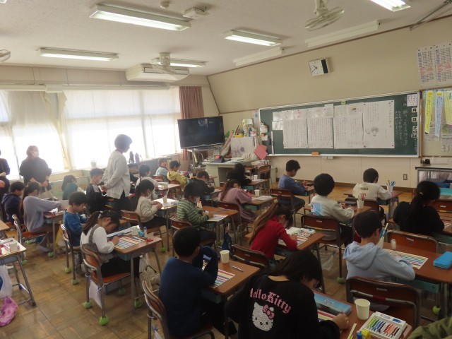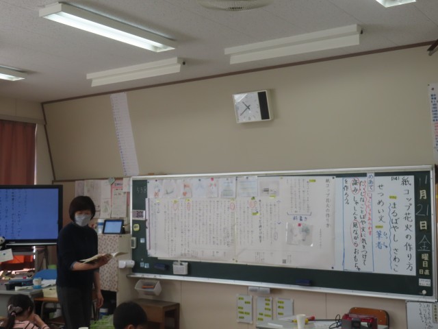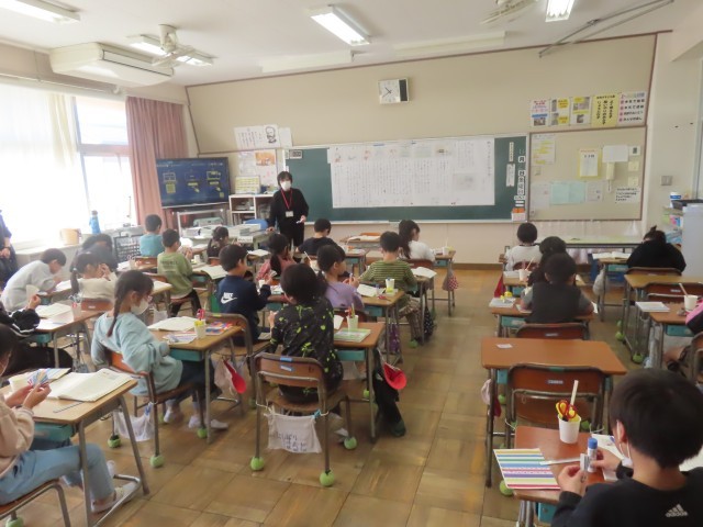 2年生は国語で説明文「紙コップ花火の作り方」の学習に取り組んでいました。今日は、本文から作り方を読み取り、実際の道具を使って紙コップ花火を作る活動を行いました。子どもたちは手順を確認しながら丁寧に作業していました。