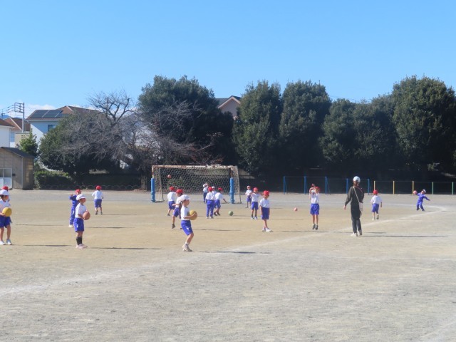 1年生は体育でボールを使った運動に取り組みました。今日は、はじめにボールを投げる練習を行った後、ドッジボールを楽しみました。暖かい日差しの中で、子どもたちは元気いっぱいに体を動かし、笑顔で活動する姿が見られました。