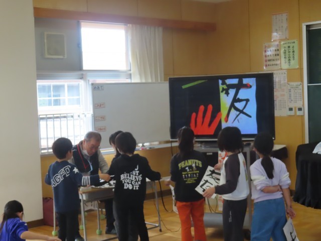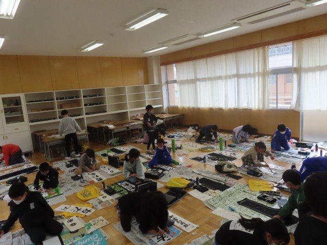 3年生は書写の学習で、書き初めの練習に取り組んでいました。題材は「お正月」です。今日は講師の先生をお迎えし、一人ひとりの作品を丁寧に見ていただきました。子どもたちはアドバイスを受けながら、よりよい作品にしようと真剣に取り組んでいました。