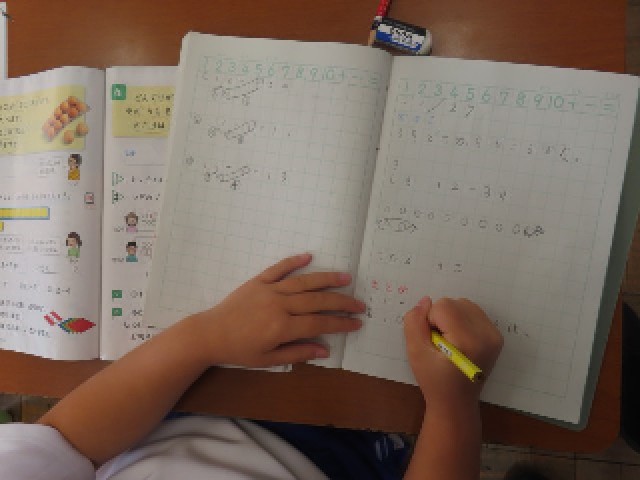 1年生は算数で「ひき算」の学習をしていました。今日は「12-3」の計算に取り組み、3をどこから引けばよいのかを考えることをめあてに学習を進めていました。子どもたちは、ブロックや図を使いながら、一つ一つ確かめるようにして理解を深めていました。