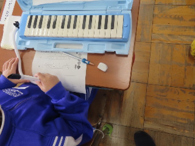 1年生は音楽で鍵盤ハーモニカを使い、学習に取り組んでいました。今日は「音で呼びかけあって、旋律をつくろう」をめあてに、子どもたちがそれぞれさまざまな旋律を考え、演奏を楽しんでいました。