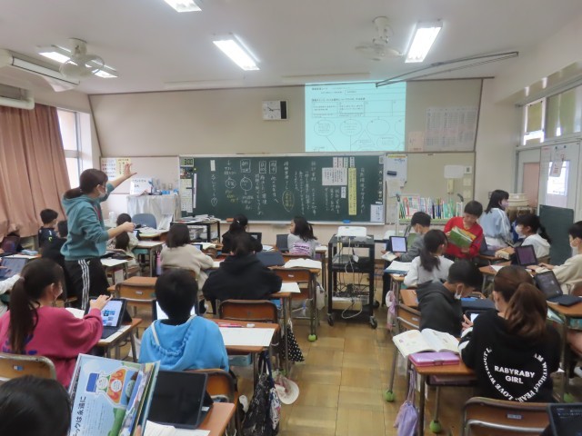 5年生の国語では、「自然環境を守るために」の学習を行っています。この単元では、関心のある環境問題について調べ、その内容を文章にまとめることをめあてとして取り組んでいます。今日は、一人一人が自分の関心のある環境問題について調べ、学習を進めていました。