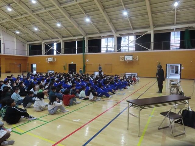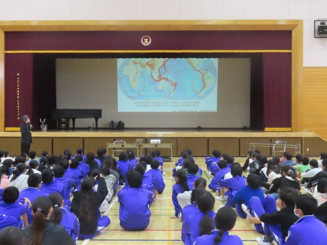 今日は、4~6年生を対象に防災教育講演会が行われました。群馬大学の先生を講師に迎え、防災に関するお話を聞きました。私たちの命に直結する内容に、児童たちは真剣な表情で耳を傾け、もしもの時にどう行動すべきかを考える貴重な時間となりました。