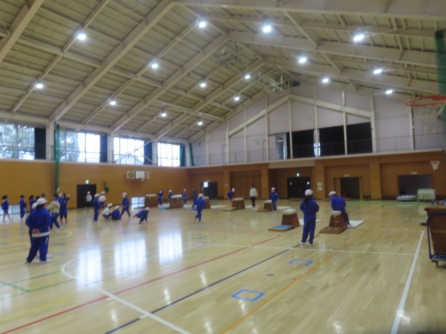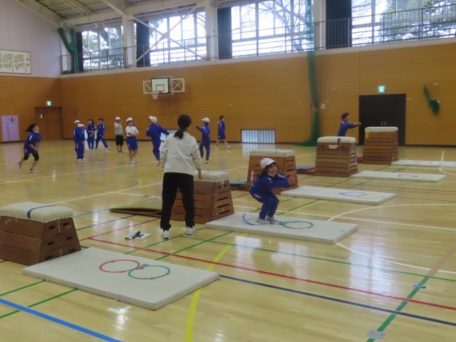 4年生は体育館で跳び箱の学習に取り組んでいました。練習が進むにつれて、上手に跳べる子が増えてきました。児童たちは、跳ぶ力だけでなく、着地のタイミングにも気を付けながら、バランスよく跳べるように一生懸命練習していました。