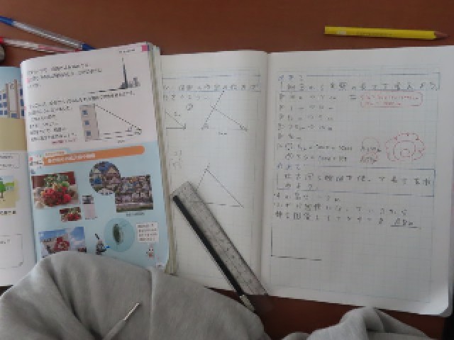 6年生の算数では「拡大図と縮図」の学習を進めています。今日は、縮図の考え方を生かして、実際の長さを求める文章題に取り組んでいました。子どもたちは図を確かめながら、丁寧に考えて解いていました。