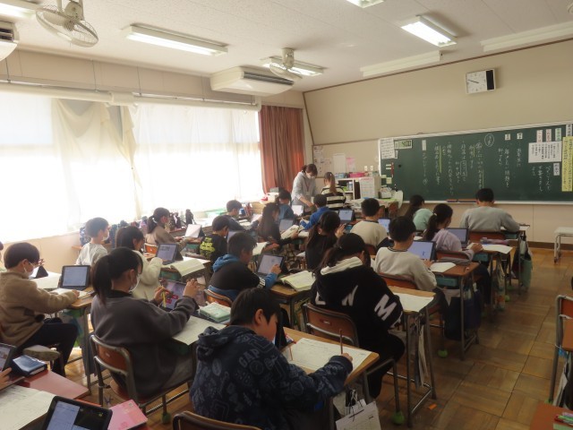 5年生の国語では「自然環境を守るために」の学習を進めています。情報整理シートに調べた内容をまとめ終え、今日は発表に向けて準備を進めていました。子どもたちは伝えたいことを工夫しながら、意欲的に取り組んでいました。