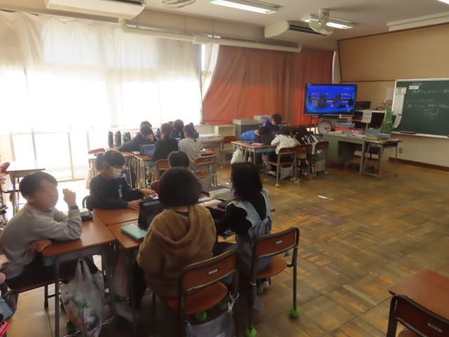 3年生が社会の学習をしていました。今日は「消防署のひみつ発表会」として、各自がタブレットでまとめた消防署のひみつを班ごとに発表し合いました。子どもたちは友達の発表を聞きながら、新しい発見を楽しんでいました。