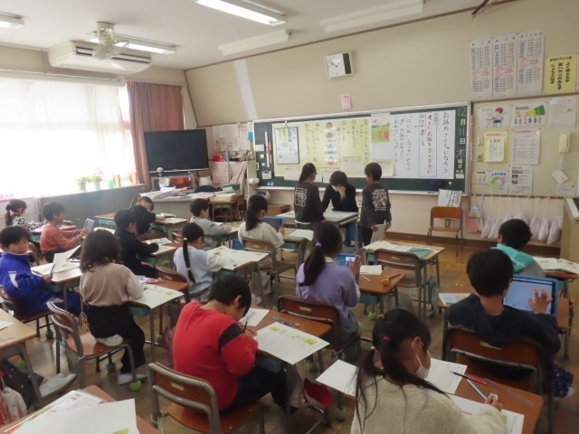 12月11日(木)2年生国語 公開日 2025/12/11 更新日 2025/12/11 できごと(2025) ChatGPT:2年生は国語で「お話のさくしゃになろう」の学習に取り組んでいます。今日は、自分で考えたお話を清書し、絵も添えて作品を完成させていました。子どもたちは思い思いの場面を丁寧に描き、楽しそうに作業を進めていました。