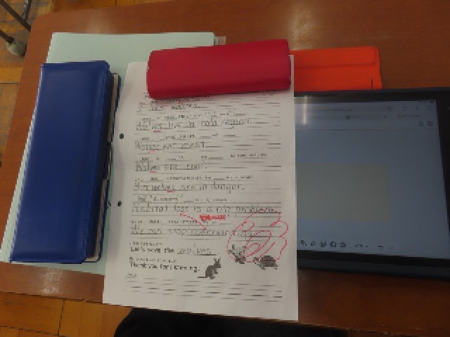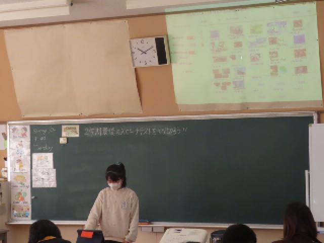 6年生は、今日の外国語の授業で「2学期最後のスピーチテストをやりきろう」をめあてに、Unit6「Save the animals」で作った自分の発表原稿を発表しました。みんな堂々と発表し、練習の成果をしっかりと発揮していました。