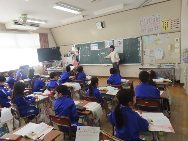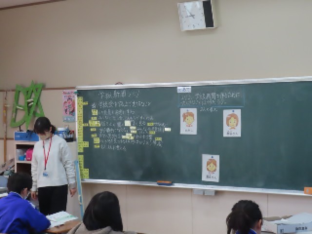 4年生が道徳の学習をしていました。今日は「学級新聞づくり」の題材を使って、他の人といっしょによりよいものを作るためには、どのようなことが大切なのかについて考え、自分の考えを友だちと伝え合いながら学んでいました。