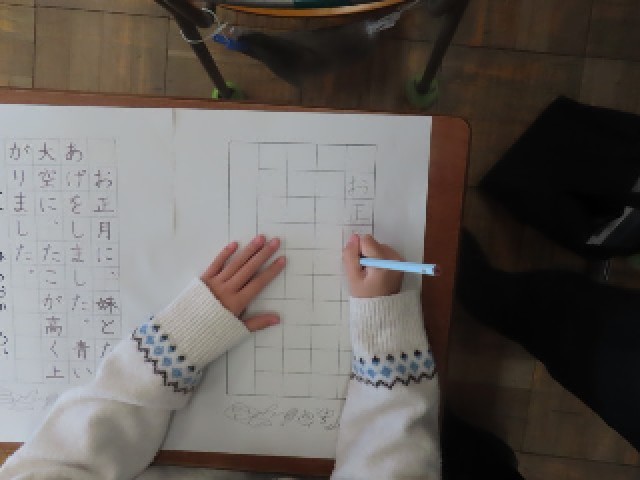 2年生は、国語の時間に書き初め大会に向けた練習を行いました。2年生は硬筆での取り組みとなります。子どもたちはお手本をよく見ながら、一文字一文字に気をつけて、集中して練習していました。本番でも、これまでの練習の成果を生かし、のびのびとした字が書けるよう頑張ってほしいと思います。