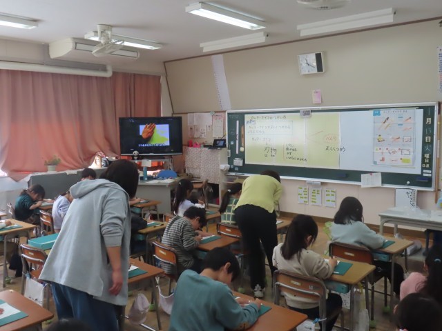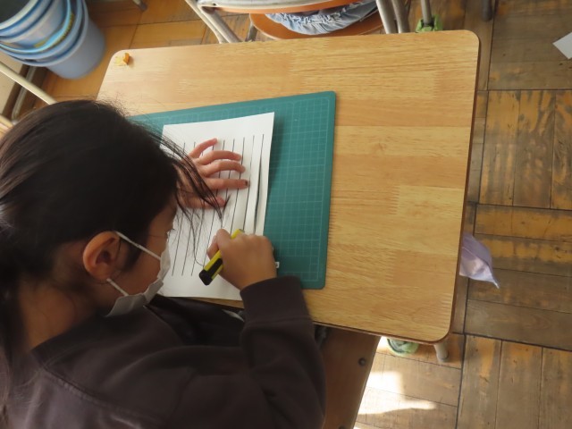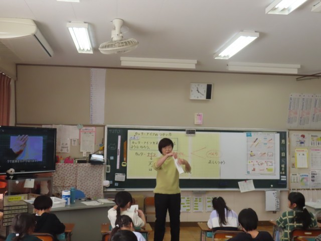 2年生は図工の時間に、カッターナイフの正しい使い方について学習しました。使い方の説明を受けた後、紙に書かれた線に沿って切る練習をし、安全に気を付けながら取り組むことができました。今後の学習に生かしてほしいと思います。