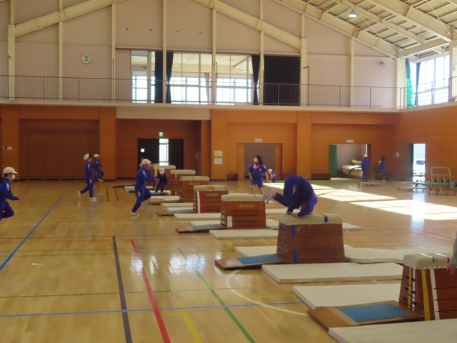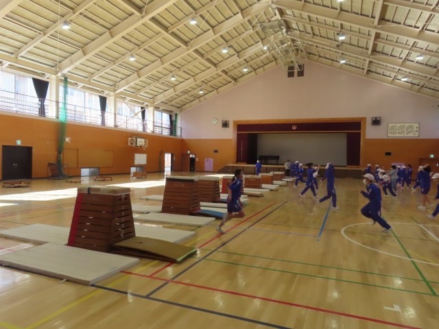4年生が体育館で跳び箱の学習を行いました。この日は2クラス合同で活動しました。段の数が異なる跳び箱を用意し、児童一人一人が自分のレベルに合った高さを選んで練習に取り組みました。何度も挑戦しながら技能を高めようとする姿が見られ、意欲的に学習する様子が印象的でした。