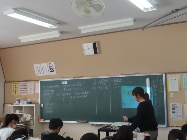 6年生が社会科で歴史の学習を行いました。今日は「日本はどのように世界へ歩み出していったのだろうか」を学習のめあてに、日清戦争や日露戦争について学習を進めました。資料や教科書をもとに当時の日本の様子を考えながら、国際社会との関わりについて理解を深めていました。