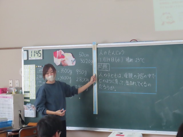 5年生の理科では、「人のたんじょう」の学習に入りました。今日は「人の子どもは母親の子宮の中で、どのように育って生まれてくるのだろうか」という単元の課題について、みんなで確認しました。これからの学習に見通しをもちながら、真剣に話を聞く姿が見られました。