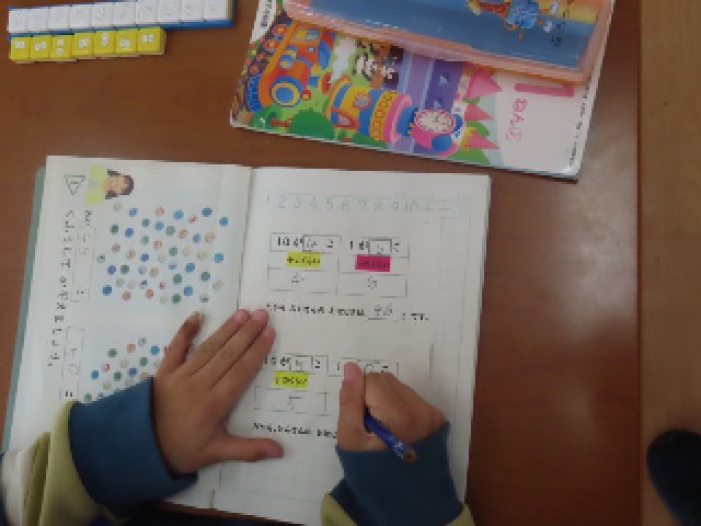 わかくさ学級の1年生が算数で「大きな数」の学習を行っていました。児童たちはブロックを使って数を操作しながら、二桁の数の表し方を楽しみながら学習していました。友達と相談しながらブロックを並べ、数の仕組みを理解しようとする姿が見られました。