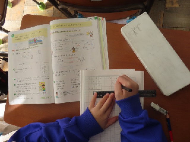 4年生の算数では、「小数×整数のかけ算」の学習を行っています。今日は、かける数が二桁の整数の場合のかけ算の筆算について学習を進め、計算のやり方を確認した後、児童一人一人が集中してたくさんの練習問題に取り組んでいました。