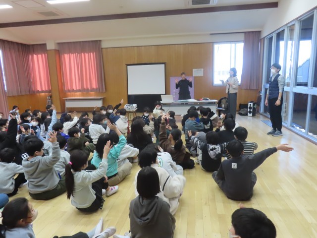 1月21日(水)3年生総合的な学習 公開日 2026/01/21 更新日 2026/01/21 できごと(2025) 3年生は総合的な学習の時間に福祉について学んでいます。今日は耳の不自由な方と通訳の方を講師に迎えて手話教室を行い、子どもたちは色々な話を直接聞き、多くの気付きを得ていました。今回の学びをこれからの生活や人との関わりに生かしてほしいと思います。