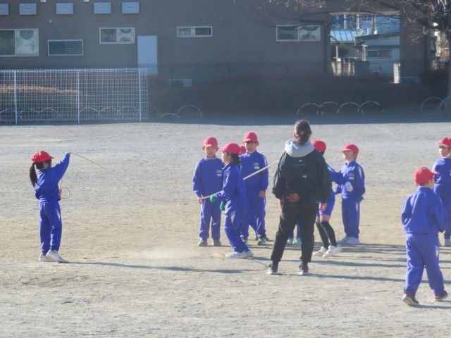 1年生は体育の時間に縄跳びの運動を行いました。長縄を使って、「ゆうびんやさんのおとしもの」をみんなで楽しみました。友だちと息を合わせて跳んだり、声をかけ合ったりしながら活動する姿が見られました。ここ最近は寒い日が続いていますが、子どもたちは寒さに負けず、元気いっぱいに体を動かしていました。
