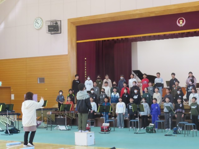 5年生は、体育館で音楽発表会に向けた練習を行いました。ステージ上に整列し、合唱の練習に取り組みました。声の強弱や歌詞の意味を意識しながら、一人一人が気持ちを込めて歌っていました。練習を重ねる中で、体育館いっぱいにきれいな歌声が響き、発表会本番への期待が高まっている様子が感じられました。