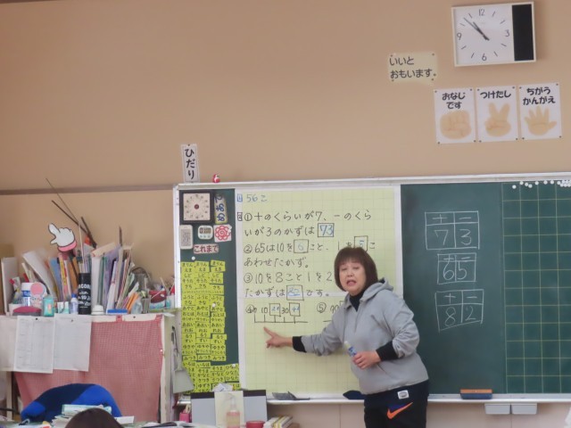 1年生は、算数で「大きなかず」の学習をしています。学習も大詰めを迎え、今日は、みんなでまとめの問題に取り組みました。友達と答えを確かめ合いながら、数の大きさについての理解を深めていました。