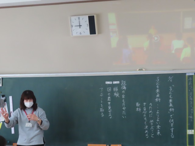 5年生は国語で「『子ども未来科』で何をする」という単元の学習に入りました。この単元では、事実と意見を区別しながら、説得力のある提案をすることについて学習していきます。今日は、これからどのような提案をしていくのかを全体で確認し、学習の見通しをもつことができました。