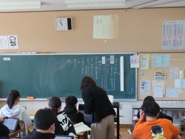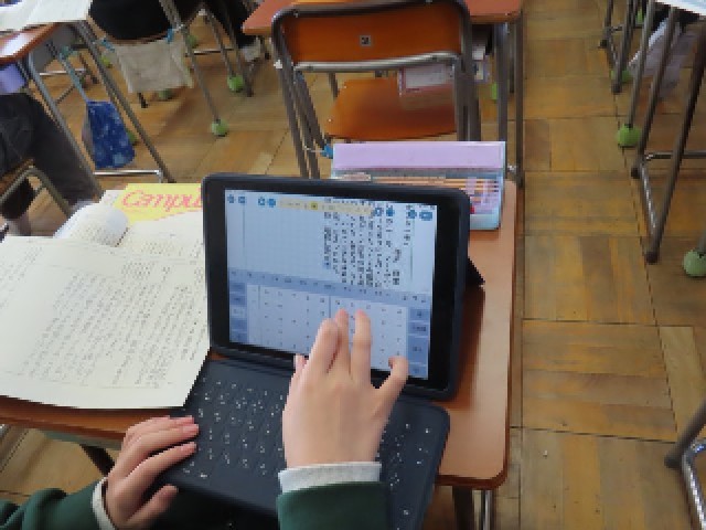 6年生は国語で「大切にしたい言葉」の学習をしています。自分が大切にしたい言葉を一つ選び、その言葉にまつわる自分の経験と結び付けながら文章を書いています。今日は自分の書いた下書きを友達と読み合い、よいところや分かりやすくなる工夫について意見を伝え合いながら、よりよい文章にするための推敲を進めていました。