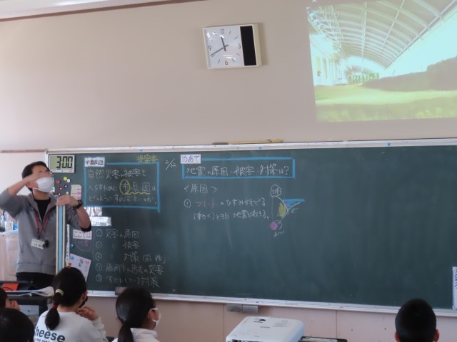 2月12日(木)5年生社会 公開日 2026/02/12 更新日 2026/02/12 できごと(2025) 5年生の社会は「自然災害を防ぐ」の学習に入りました。この単元では、「自然災害の被害を少なくするために自治体はどのようなことをしていけばよいのか」を学習課題として取り組んでいます。今日はまず、地震という自然災害について理解を深め、地震が起こる仕組みやこれまでの被害の様子、被害を減らすための取り組みなどについて資料をもとに考えていました。