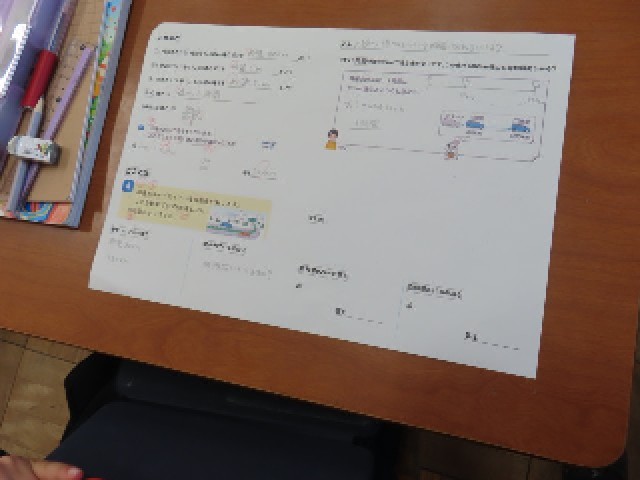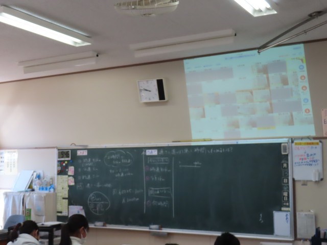 5年生は算数で「速さ」の学習をしています。今日は、「時速80㎞の自動車が480㎞の距離を進むとき、かかる時間はどれくらいか」という、時間を求める問題に取り組んでいました。速さ・時間・道のりの関係をもとに式を立てながら、意欲的に考える姿が見られました。学習が進むにつれて問題も少しずつ難しくなっていますが、これまでに学んだことを活用しながら取り組んでいます。