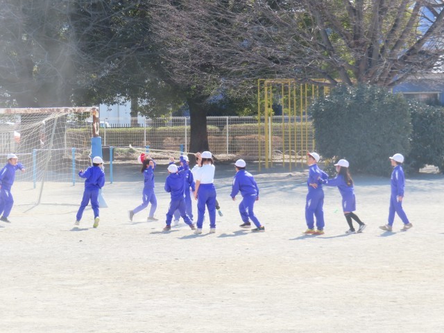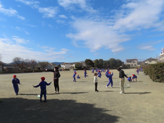 3年生が体育の授業で縄跳びに取り組みました。前半は短縄でできる技を増やそうと、一人一人が目標をもって練習に励んでいました。後半は長縄に挑戦し、声を掛け合いながら楽しく活動していました。穏やかな気候の中、気持ちよく体を動かすことができました。