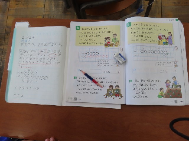 1年生は算数で「ずをつかってかんがえよう」の学習をしていました。問題文をよく読み取り、数を○で表しながら、どのような計算になるのかをみんなで考えていました。図を手がかりにしながら式につなげようとする姿が見られ、意欲的に取り組んでいました。