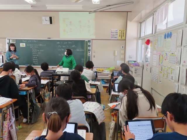 5年生は外国語の学習をしていました。今日は「あこがれの人や、その人の得意なことを紹介しよう」というめあてで取り組みました。紹介する内容を考えながら、伝えたいことが相手に分かりやすく伝わるよう、意欲的に学習していました。