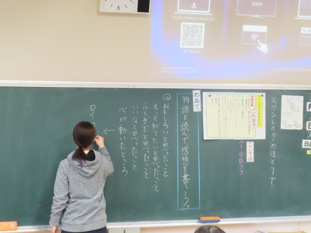 4年生の国語では、物語文「スワンレイクのほとりで」の学習が始まりました。本単元では、「読んで考えたことを友達と伝え合う」ことを目標に学習を進めていきます。今日はまず物語を読んだ感想を一人一人がじっくりと考え、自分なりの思いや気付きをまとめていました。これからの学習を通して、登場人物の気持ちや物語のよさについてさらに深く読み取り、友達と交流しながら理解を深めていってほしいと思います。