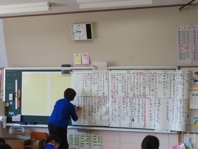 2年生は国語で物語文「スーホの白い馬」の学習をしています。とても長いお話ですが、場面ごとに登場人物の行動やその理由について考えながら学習を進めています。今日は4の場面について、登場人物の気持ちや様子に注目しながら学習に取り組んでいました。