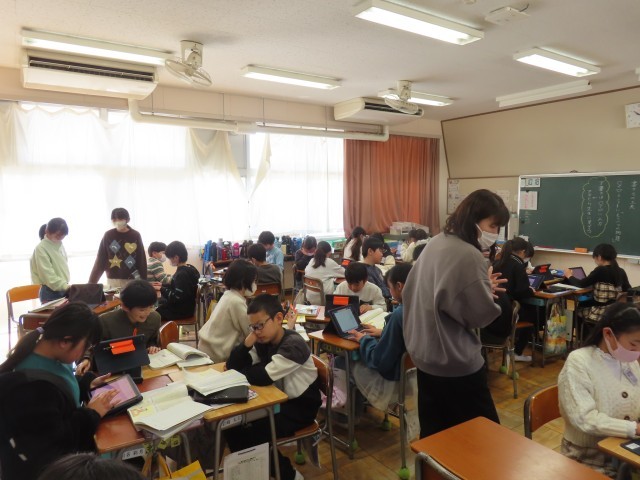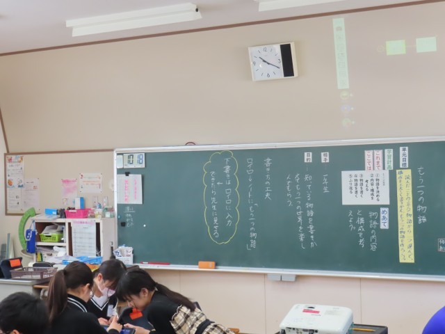 5年生の国語では、「もう一つの物語」の学習に取り組んでいます。この単元では、これまでに読んだことのある物語を一つ選び、構成を工夫して書き換え、自分なりの「もう一つの物語」をつくることを目標に学習を進めています。今日は、自分が選んだ物語の内容や構成について考えました。友達と交流しながら意見を出し合い、さまざまなアイデアを広げていました。