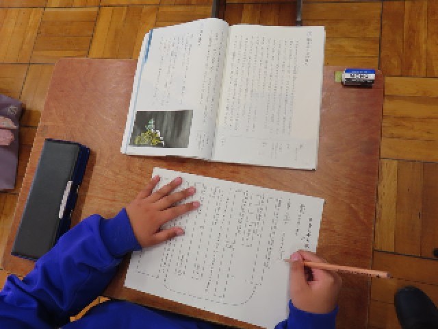 わかくさ学級の3年生が、国語で物語文「モチモチの木」の学習をしていました。今日はワークシートを使いながら、登場人物の気持ちや場面の様子に注目して、お話の内容を読み取る学習に取り組んでいました。文章を丁寧に読み返しながら、自分の考えをワークシートに書き込み、物語への理解を深めていました。