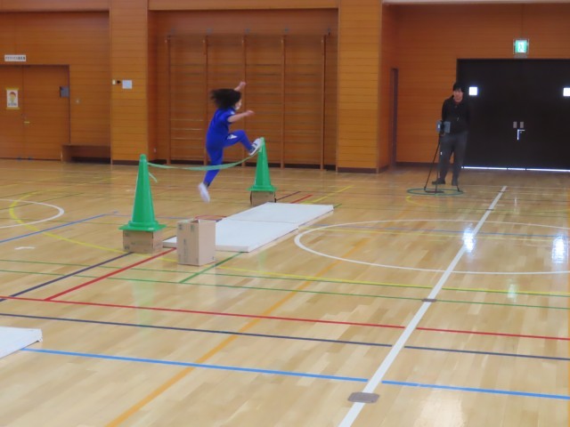 4年生が体育の授業で高跳びに取り組みました。この日はタブレットの数秒後に映像を再生できる機能を活用し、自分が跳んでいる様子をその場で確認しながら練習しました。子どもたちは自分のフォームを見直し、よりよい跳び方になるよう工夫しながら意欲的に取り組んでおり、とても有意義な学習となりました。