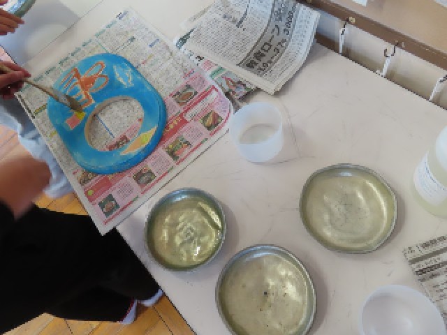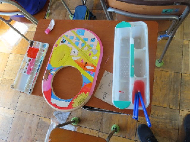 6年生は図工の授業で壁掛け時計の製作を行っています。時計の周りの木の部分を彫刻刀で丁寧に彫り、一人一人が工夫して色を付けた後、ニスを塗って仕上げていき、最後に時計をはめ込んで完成させます。製作もいよいよ大詰めを迎え、ニスを塗り始める子どもたちも出てきました。完成に向けて、最後まで集中して取り組んでいます。