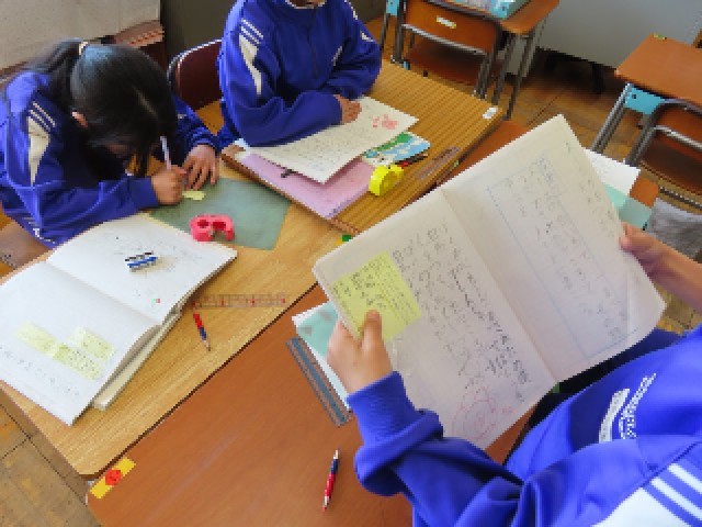 2年生が国語で物語文「スーホの白い馬」の学習をしていました。今日はそれぞれが書いた感想を読み合い、よかったところを付箋に書いて交換する活動を行いました。友達の感じ方や考えに触れながら、互いのよさを見つけ合う学習となっていました。