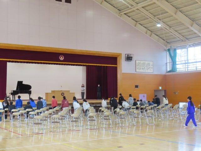 6年生が卒業式に向けて練習をしていました。今日は、入退場の動きの練習を行いました。一つ一つの動きを確認しながら、真剣な表情で取り組んでいました。いよいよ卒業まであと約1週間となりました。残りの日々を大切に過ごしてほしいと思います。