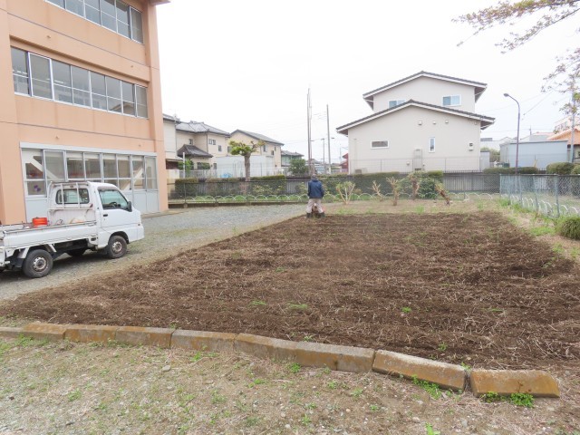 4月9日(木)畑の整備 公開日 2026/04/09 更新日 2026/04/09 できごと(2026) 2年生は5月にサツマイモの苗を植える予定です。それに向けて、ボランティアの方が学校の畑を整備してくださいました。固くなっていた土も、耕運機をかけていただいたおかげで、とてもやわらかくなりました。子どもたちにとって、土に触れながら作物を育てる体験は大変貴重な学びとなります。こうして安心して活動に取り組めるのも、日頃より支えてくださっている皆様のおかげです。子どもたちのために温かいご支援をいただき、誠にありがとうございます。今年度もどうぞよろしくお願いいたします。