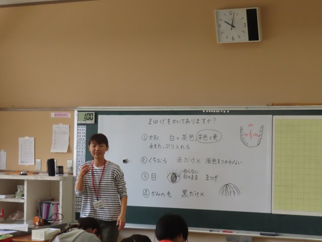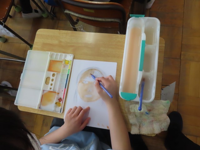 6年生が図工の学習で自画像を描いていました。画用紙に丁寧に下書きをした後、絵の具で色を塗り進めていました。これまでの経験や記憶をもとに、自分の顔の形や表情の特徴を捉えながら表現している様子が印象的でした。さすが6年生だけあって、どの作品も工夫が見られ、上手に仕上げていました。