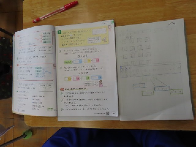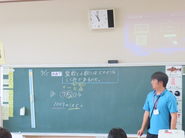 5年生は算数で「整数と小数」の学習をしていました。この日は、0から9までの10個の数字の中から4つの数字と小数点を使ってさまざまな大きさの数を作る活動に取り組み、整数と小数のしくみについて理解を深めていました。