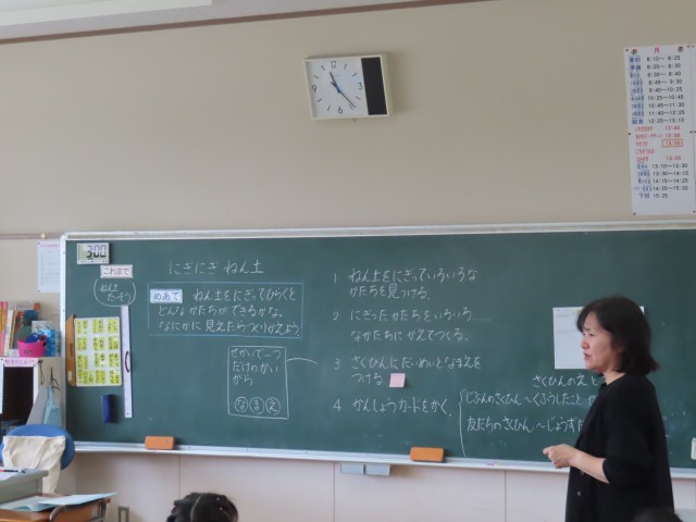 2年生が図工で粘土を使った創作活動に取り組んでいました。今日は、粘土を自分の手で握ってできた形から、いろいろなものを想像して作品づくりを行いました。子どもたちは、形の変化を楽しみながら発想を広げ、思い思いに工夫した作品をつくっていました。それぞれのアイデアが生かされた、個性豊かな作品が見られました。