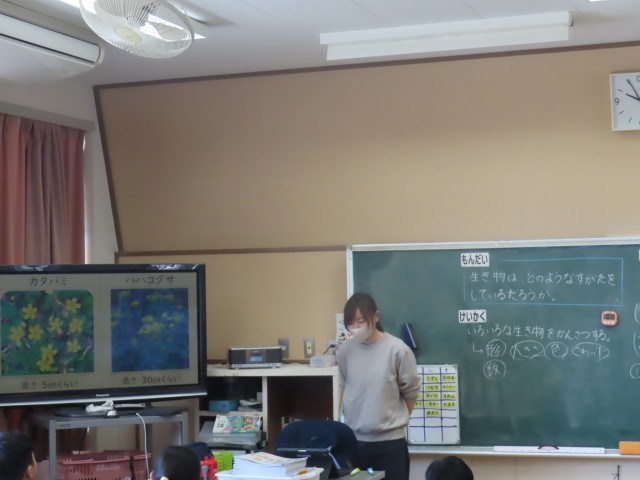 3年生は、理科で「春の生き物」の学習をしていました。今日は、観察した植物や生き物を比べながら、その違いについて考え、春の生き物の特徴をまとめていました。子どもたちは、色や形、大きさの違いに気付きながら、それぞれの特徴を丁寧に捉え、意欲的に学習に取り組んでいました。