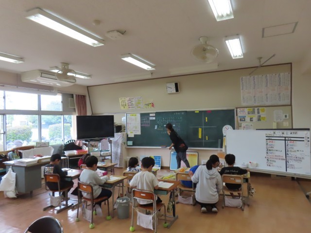 わかくさ学級の1・2年生が算数の学習に取り組んでいました。1年生は数の学習、2年生はたし算の筆算の学習に取り組み、それぞれの課題に応じて学習を進めていました。子どもたちは先生の話をよく聞きながら、手順を確かめたり、ていねいに計算したりするなど、意欲的に学習に取り組んでいました。