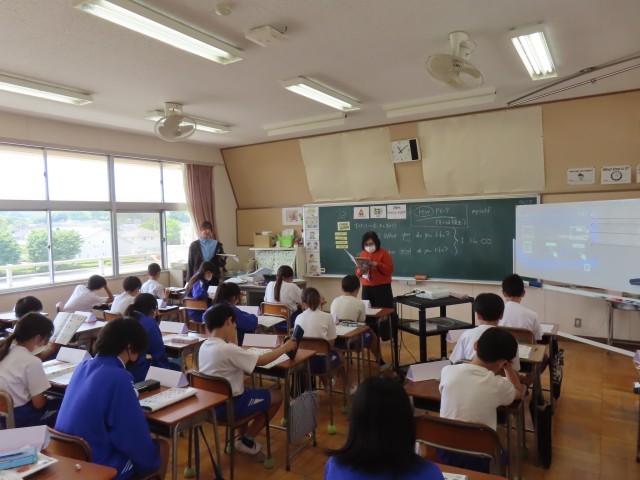 6年生が外国語の学習をしていました。今日は「好きなものの言い方を知ろう」をめあてに、「What ~ do you like?」「I like ~」の英語表現を使ってコミュニケーションをとっていました。まずは動物や教科などの英単語の言い方を練習し、その後、学んだ表現を使って友達とやり取りをしながら、楽しく活動していました。