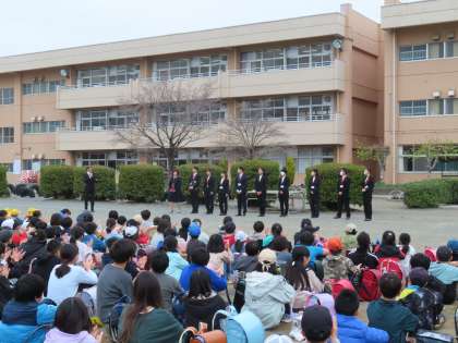 新任式では、13名の職員の紹介がありました。紹介のたびに児童からあたたかい心のこもった拍手が自然とわきあがってきました。転入した職員一同、とても嬉しく思いました。